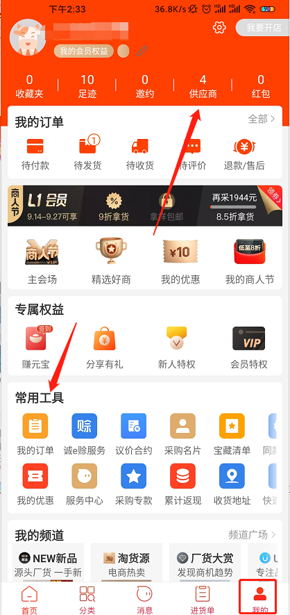 我们先下载一个手机版的阿里巴巴,用我们的手机淘宝账号登录,就可以进去首页了。