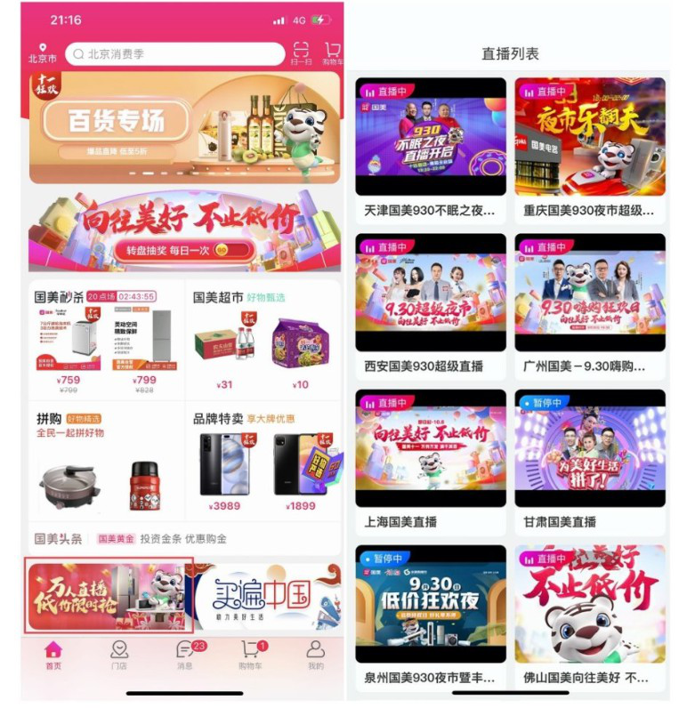 从9月30日到10月8日,连续9天,用户只要登录国美APP首页,就能看到专属的“万人直播”入口,一览国美全国几千家门店在店内开播互动的真实场景。这也是国美APP“万店上云”以来,结合带货直播,实现国美线上线下双平台联动的最大动作。