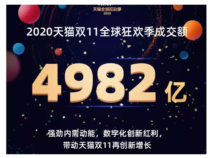 今年双11,天猫实时成交额达4982亿元,京东平台GMV也达2715亿元,拼多多没说。